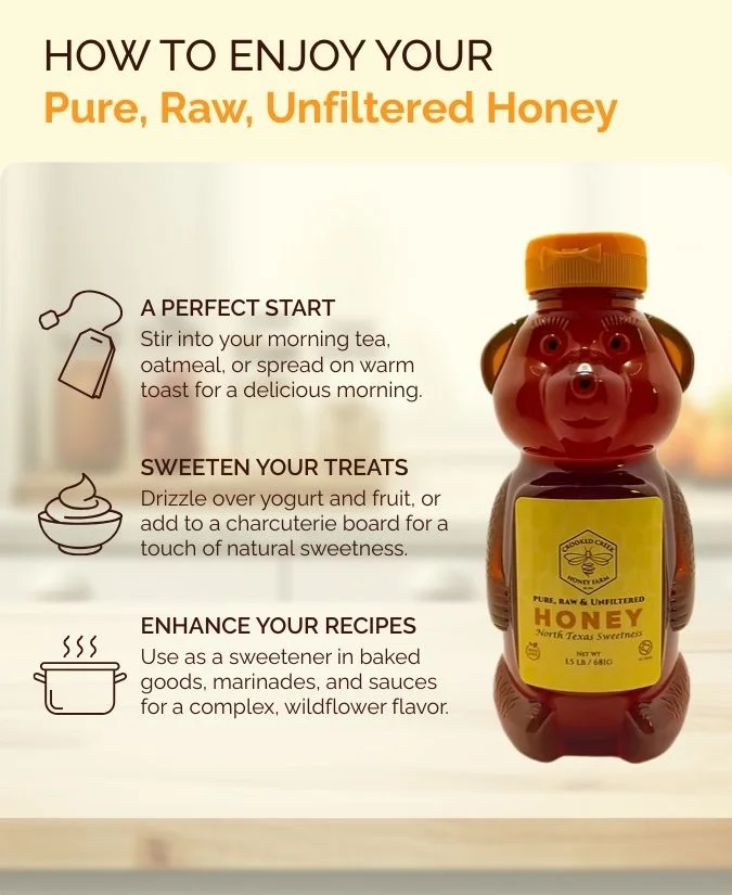 WITH CROOKED CREEK HONEY, YOU’LL: