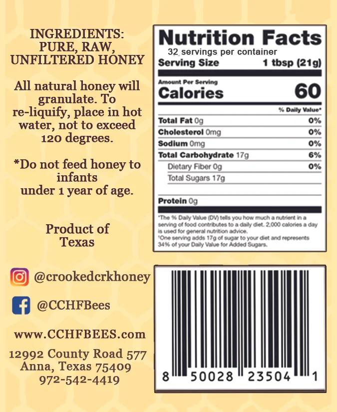 - Ingredients: 100% Pure, Raw, Unfiltered Texas Honey